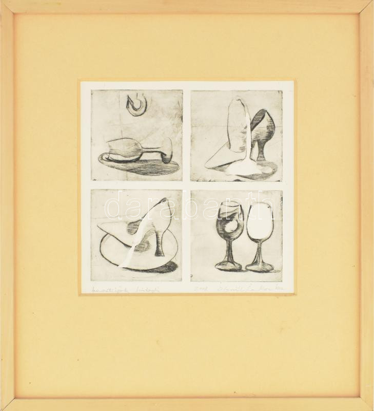 Horváth Éva Mónika (1965-): Körömcipők, 2008. Hidegtű, papír. Jelzett.... https://www.darabanth.com/de/457-Fernauktion/457.0/Gemalde-und-Grafiken/Gemalde-und-Grafiken~500002/Horvath-Eva-Monika-1965-Koromcipok-2008-Hidegtu-papir-Jelzett-20-58x20-5-cm-Fakere~II2986064
