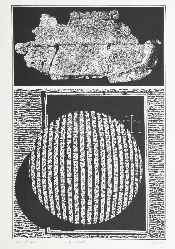 Joseph Kádár (1936-2019): Dualité. Szitanyomat, papír, jelzett, számozott (92/100), hátoldalán a művész bélyegzőjével, 58,5x38,5 cm / Joseph Kádár (1936-2019): Dualité. Screenprint on paper, signed, numbered (92/100), with the artist's stamp on the reverse,