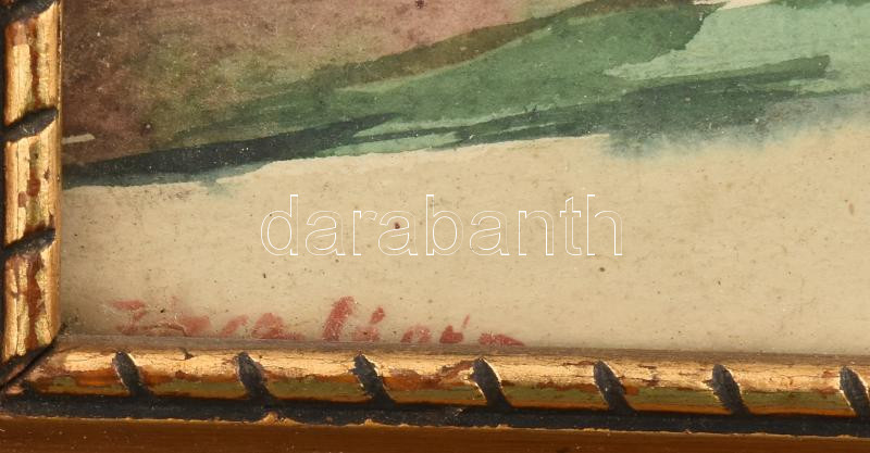Beschreibung: Józsa Sándor (1910-1989): Budapesti park. Akvarell, papír, jelezve balra lent, üvegezett fakeretben, 27×40 cm