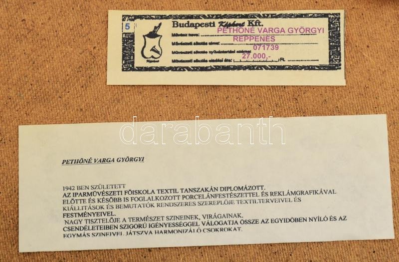 Pethőné Varga Györgyi (1942-): Reppenés (vadkacsák). Olaj, farost, jel... https://www.darabanth.com/de/457-Fernauktion/457.0/Gemalde-und-Grafiken/Gemalde-und-Grafiken~500002/Pethone-Varga-Gyorgyi-1942-Reppenes-vadkacsak-Olaj-farost-jelzett-hatoldalan-cimkC3~II3033532