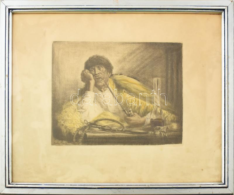 Prihoda István (1891-1965) - Glatter Gyula (1886-1927): Ivóban (Pipázó kocsis). Színezett rézkarc, papír, jelzett a karcon, üvegezett fakeretben, 23×29 cm