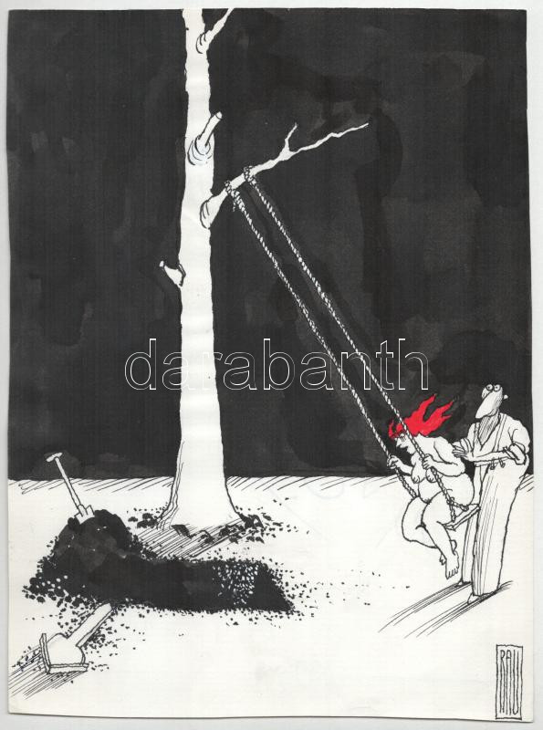 Rau Tibor (1934-2000), 2 db karikatúra: Női akt hintában és Baráti fek... https://www.darabanth.com/de/457-Fernauktion/457.0/Gemalde-und-Grafiken/Gemalde-und-Grafiken~500002/Rau-Tibor-1934-2000-2-db-karikatura-Noi-akt-hintaban-es-Barati-fekete-humor-Akvarell-tus-~II3031672