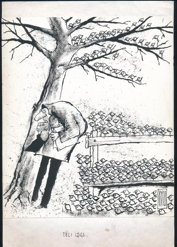 Rau Tibor (1934-2000): Téli idill (karikatúra). Tus, papír. Jelzett. P... https://www.darabanth.com/de/457-Fernauktion/457.0/Gemalde-und-Grafiken/Gemalde-und-Grafiken~500002/Rau-Tibor-1934-2000-Teli-idill-karikatura-Tus-papir-Jelzett-Papirra-kasirozva-24x21-c~II2891119