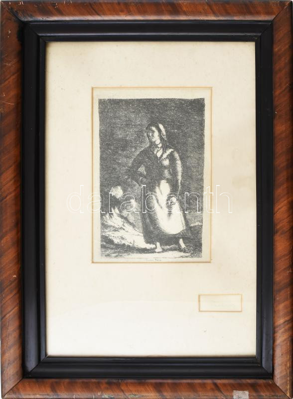 Beschreibung: Rudnay Gyula (1878-1957): Pásztorleány. Rézkarc, papír, jelzett. Dekoratív, üvegezett fakeretben, 22×14 cm
