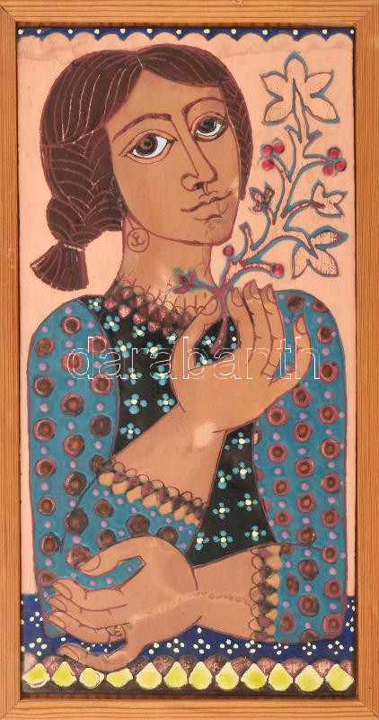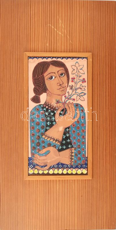 Stefániay Edit (1936 - ) Nő virággal. Tűzzománc, 20x10 cm, kerettel 39... https://www.darabanth.com/de/457-Fernauktion/457.0/Gemalde-und-Grafiken/Gemalde-und-Grafiken~500002/Stefaniay-Edit-1936-No-viraggal-Tuzzomanc-20x10-cm-kerettel-39x20-cm~II2992660