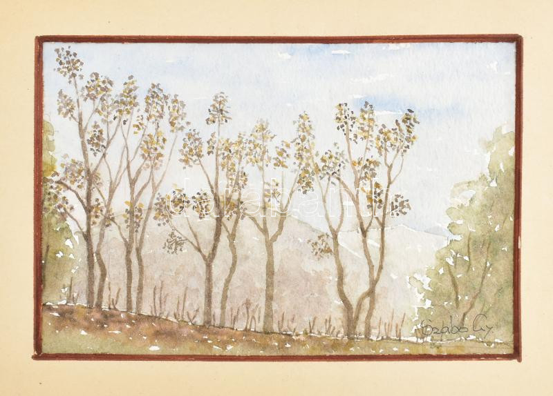 Szabó György (1927-2017): Szabadság hegyi fák. Akvarell, papír, jelzet... https://www.darabanth.com/de/457-Fernauktion/457.0/Gemalde-und-Grafiken/Gemalde-und-Grafiken~500002/Szabo-Gyorgy-1927-2017-Szabadsag-hegyi-fak-Akvarell-papir-jelzett-17-5x26-5-cm-paszpart~II3040117