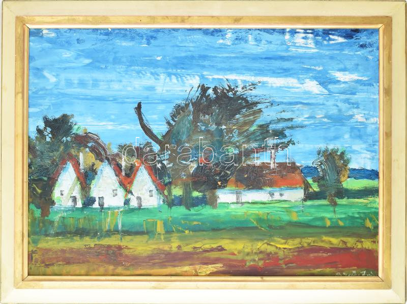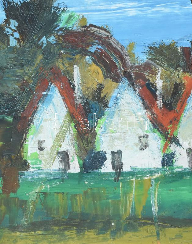 Szűcs János (1917-1995): Faluvége. Olaj, farost, jelezve jobbra lent. ... https://www.darabanth.com/de/457-Fernauktion/457.0/Gemalde-und-Grafiken/Gemalde-und-Grafiken~500002/Szucs-Janos-1917-1995-Faluvege-Olaj-farost-jelezve-jobbra-lent-Hatoldalan-Kepcsarnok-VC3~II3052152