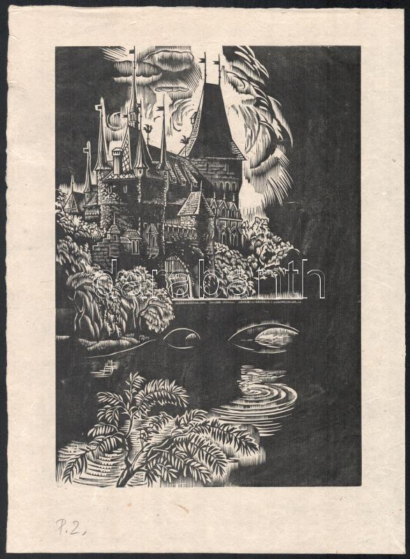 Beschreibung: Varga Mátyás (1910-2002): Vajdahunyad vára, 1940. Fametszet, papír, jelzés nélkül, 26×18 cm