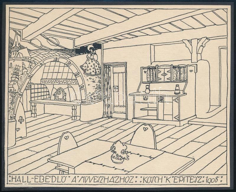 cca 1908 Kós Károly (1883-1977): "Hall - Ebédlő a Művészházhoz&qu... https://www.darabanth.com/de/457-Fernauktion/457.0/Gemalde-und-Grafiken/Gemalde-und-Grafiken~500002/cca-1908-Kos-Karoly-1883-1977-Hall-Ebedlo-a-Muveszhazhoz-fametszet-papir-jelzett-a~II3037012