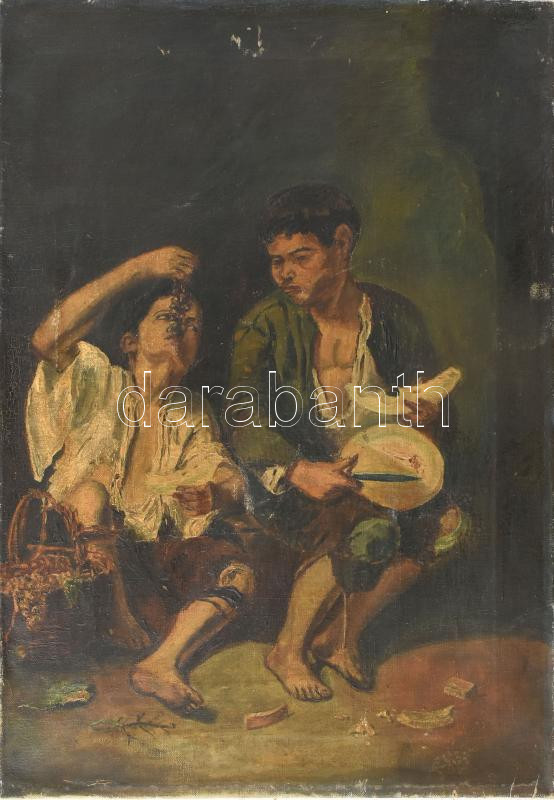 Jelzés nélkül: Gyümölcsevők. Olaj, vászon, kissé sérült. 47×33 cm https://www.darabanth.com/de/457-Fernauktion/457.0/Gemalde-und-Grafiken/Gemalde-und-Graphic-quot-signiertquot-quot-ohne-Signquot-~500003/Jelzes-nelkul-Gyumolcsevok-Olaj-vaszon-kisse-serult-47C39733-cm~II3053224