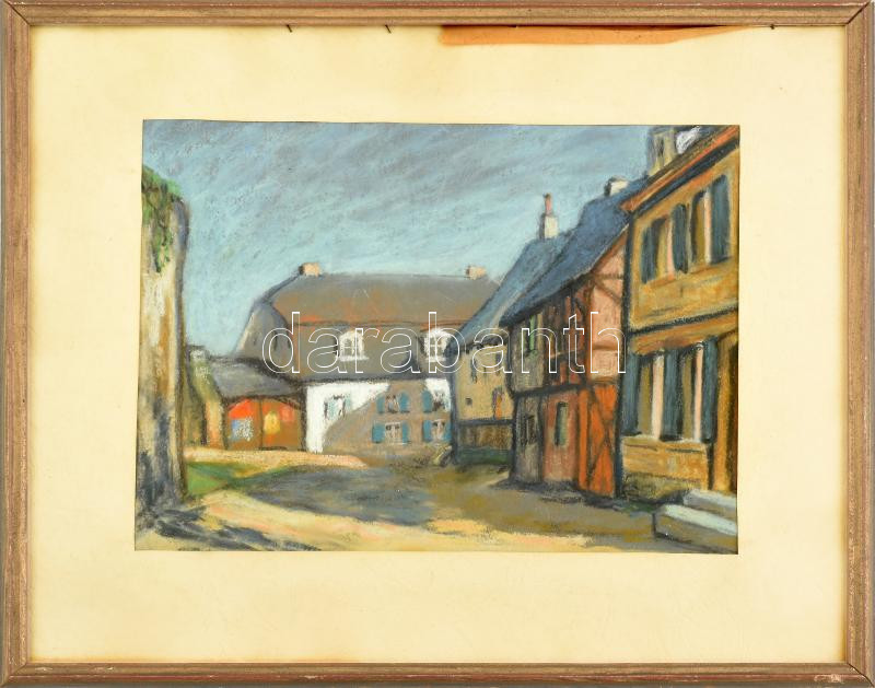 Beschreibung: Jelzés nélkül (Theo Schafgans?): Utcarészlet Vilichben (Bonn, Németország). Pasztell, papír. Hátoldalán feliratozott. Dekoratív, üvegezett fakeretben. 24×31 cm.