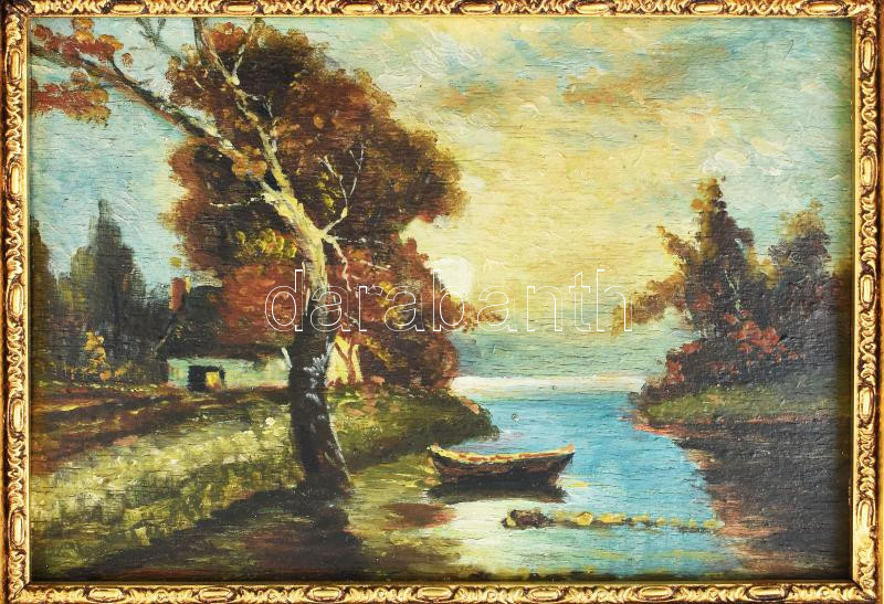 Jelzés nélkül: Vízparti táj. Olaj, falemez. Dekoratív fakeretben. 18x2... https://www.darabanth.com/de/457-Fernauktion/457.0/Gemalde-und-Grafiken/Gemalde-und-Graphic-quot-signiertquot-quot-ohne-Signquot-~500003/Jelzes-nelkul-Vizparti-taj-Olaj-falemez-Dekorativ-fakeretben-18x25-cm~II3055352