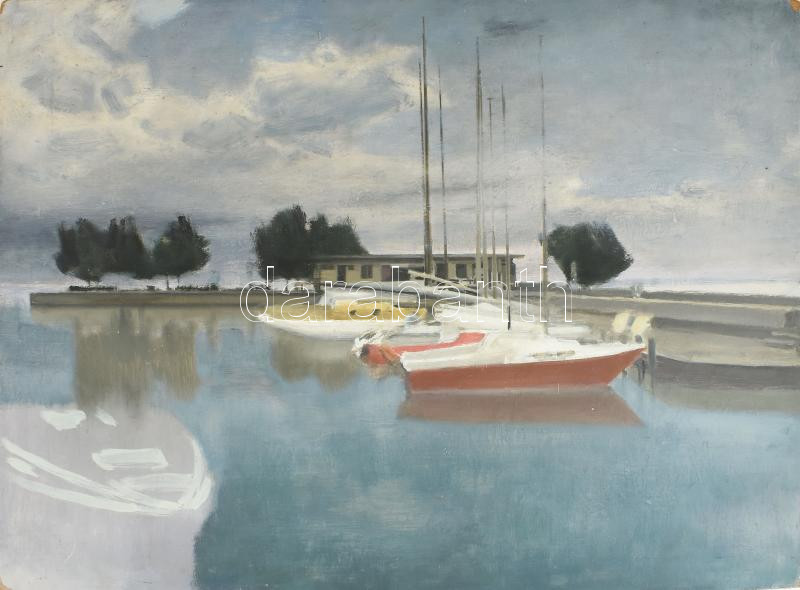 Jelzés nélkül, XX. sz. második fele: Balatoni kikötő. Olaj, farost. Sa... https://www.darabanth.com/de/457-Fernauktion/457.0/Gemalde-und-Grafiken/Gemalde-und-Graphic-quot-signiertquot-quot-ohne-Signquot-~500003/Jelzes-nelkul-XX-sz-masodik-fele-Balatoni-kikoto-Olaj-farost-Sarkaiban-es-szelen-kis~II3054247
