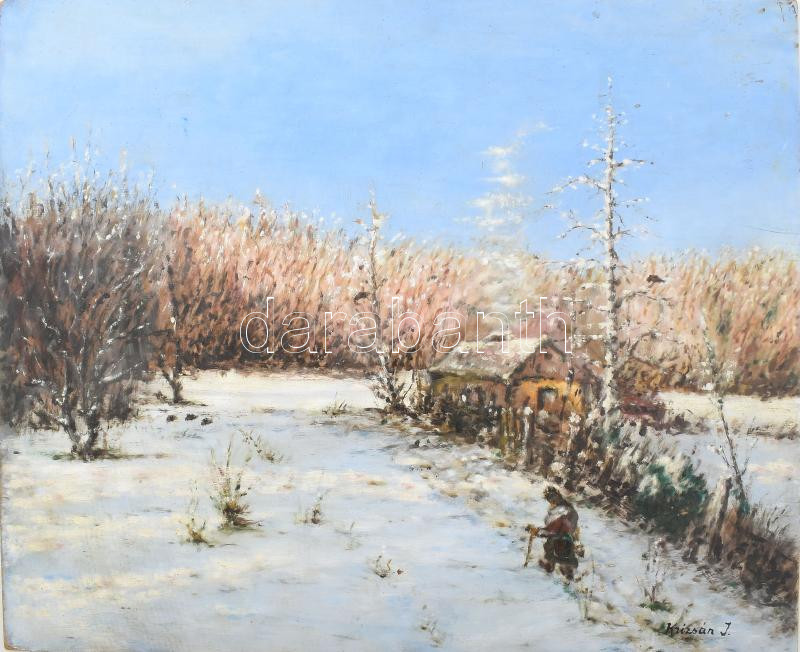 Krizsán J jelzéssel: Séta a hóban. Olaj, farost. 50x60 cm. https://www.darabanth.com/de/457-Fernauktion/457.0/Gemalde-und-Grafiken/Gemalde-und-Graphic-quot-signiertquot-quot-ohne-Signquot-~500003/Krizsan-J-jelzessel-Seta-a-hoban-Olaj-farost-50x60-cm~II3051789