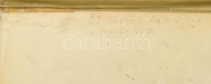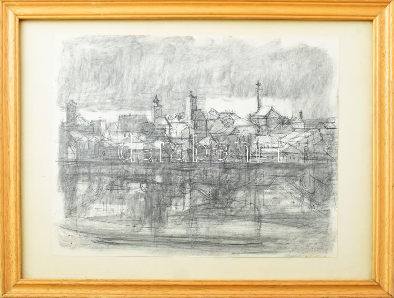 Olvashatatlan jelzéssel: Szentendrei panoráma. Golyóstoll, szén, papír, bal felső sarkában kisebb lapszéli sérüléssel. Üvegezett fakeretben. 24x30 cm.