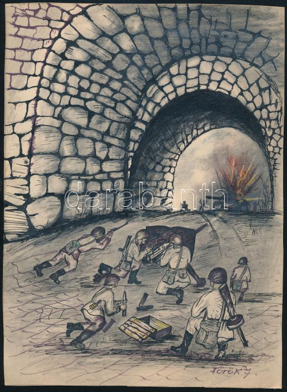 Török J jelzéssel: Csatajelenet. vegyes technika, papír. 25,5x19 cm. https://www.darabanth.com/de/457-Fernauktion/457.0/Gemalde-und-Grafiken/Gemalde-und-Graphiken-auf-niedrigem-Einstiegspreis~500004/Torok-J-jelzessel-Csatajelenet-vegyes-technika-papir-25-5x19-cm~II3013846