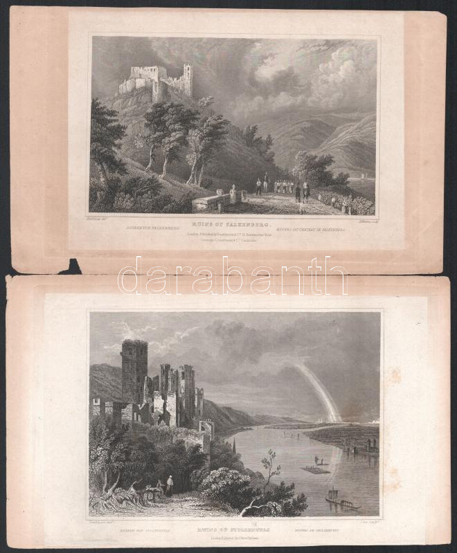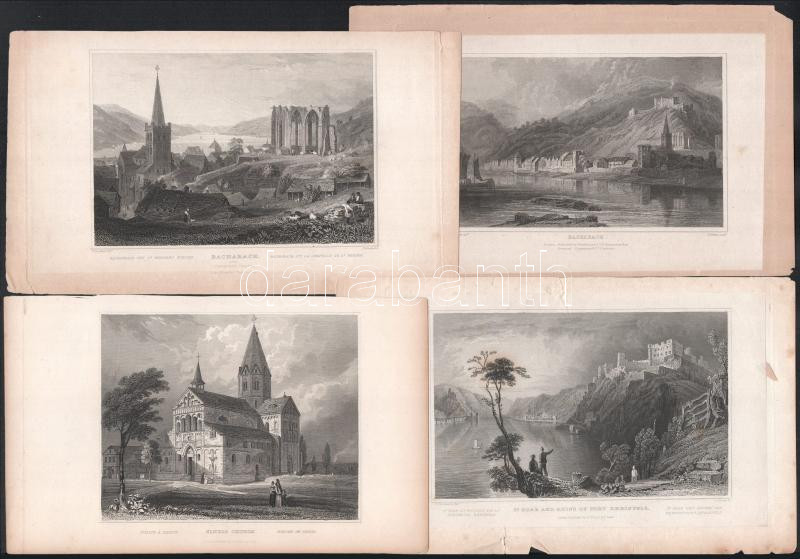 Beschreibung: cca 1840-1860 18 db főként német területeket bemutató metszet (der Schreckenstein, Paulinzella, Ruins of Falkenberg, stb.), 13×19 cm