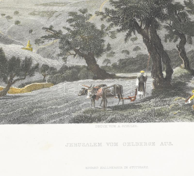 Beschreibung: cca 1850 Jerusalem von Oelberg aus - Jerusalem az olajfák hegyéről. Színezett acélmetszet, paszpartuban