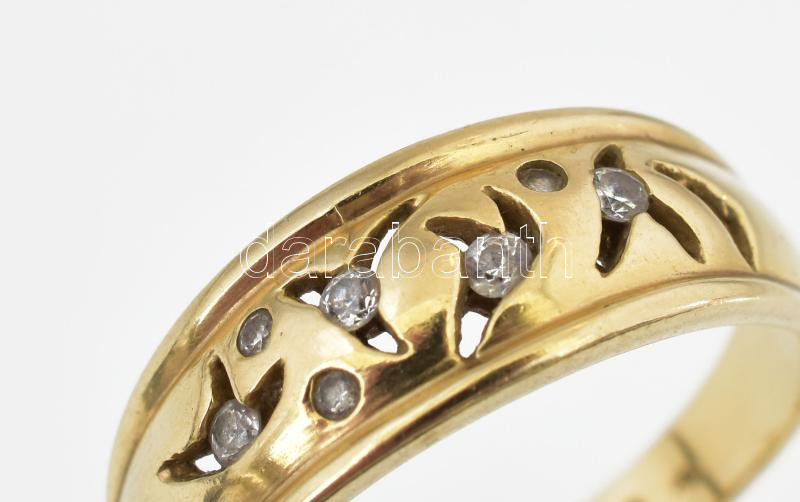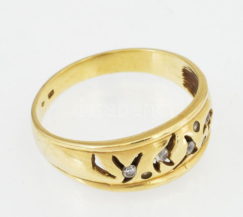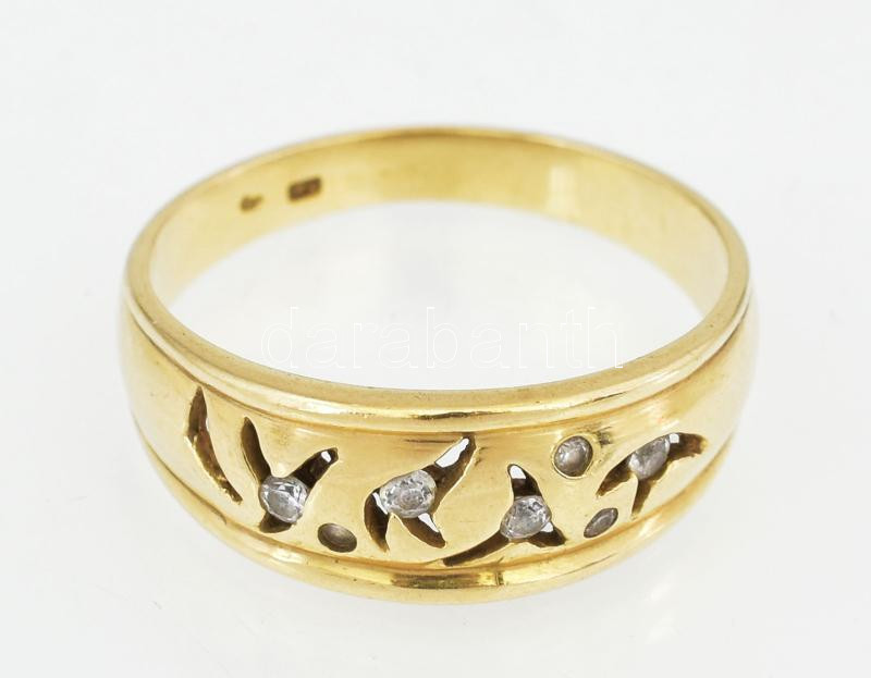 Beschreibung: Arany (Au) 14K áttört köves gyűrű, jelzett, méret: 65, bruttó: 4,6 g