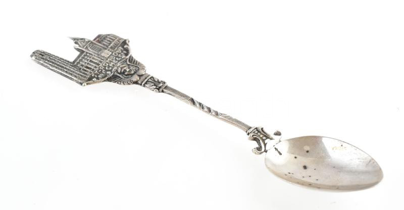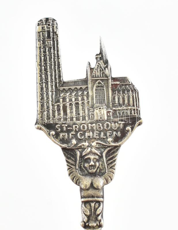 Beschreibung: Ezüst (Ag) belga díszkanál, Mechelen, St. Rombout (Szent Rumbold-katedrális) motívummal. Jelzett (835), apró foltokkal, nettó: 10,6 g, h: 11 cm