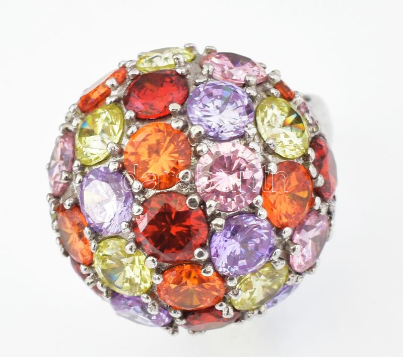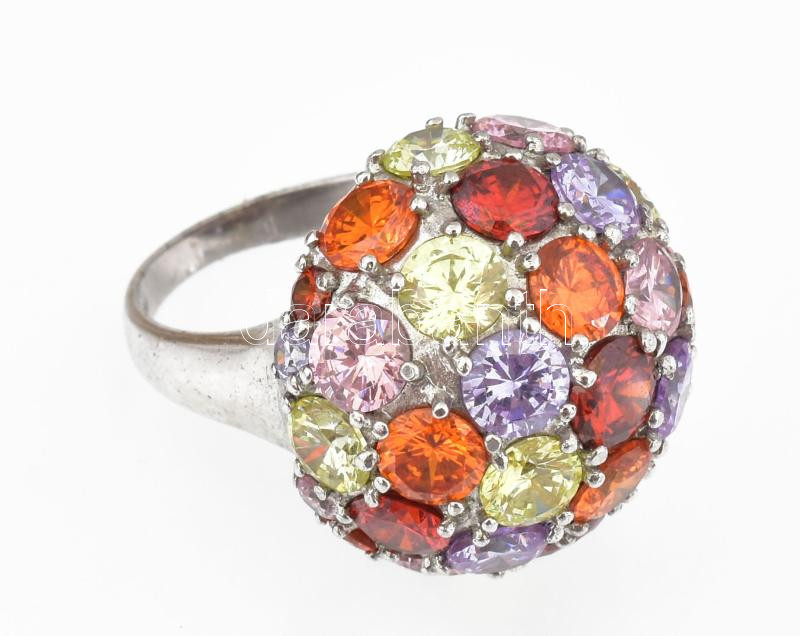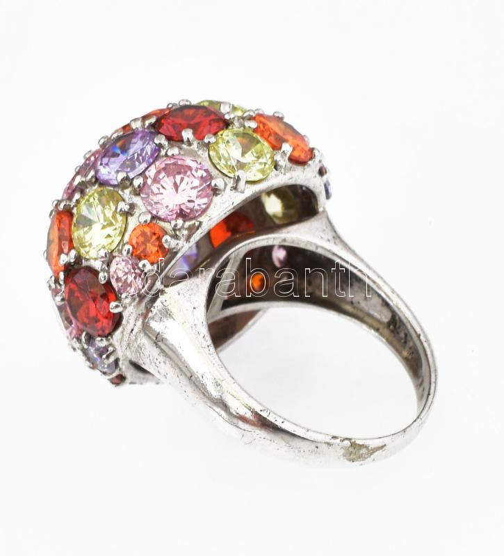Beschreibung: Ezüst (Ag) koktélgyűrű, színes, szintetikus kövekkel, jelzett, 55-ös méret, bruttó 15 g