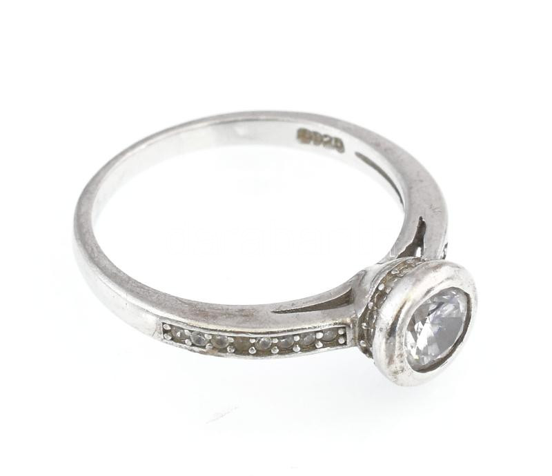 Ezüst(Ag) apró kövekkel kirakott gyűrű, jelzett, méret: 53, bruttó: 2,... https://www.darabanth.com/de/457-Fernauktion/457.0/Juwellen-und-Kunstobjekte-aus-Edelmetall/Juwellen-und-Kunstobjekte-aus-Edelmetall~2000365/EzustAg-apro-kovekkel-kirakott-gyuru-jelzett-meret-53-brutto-2-5-g~II3039011