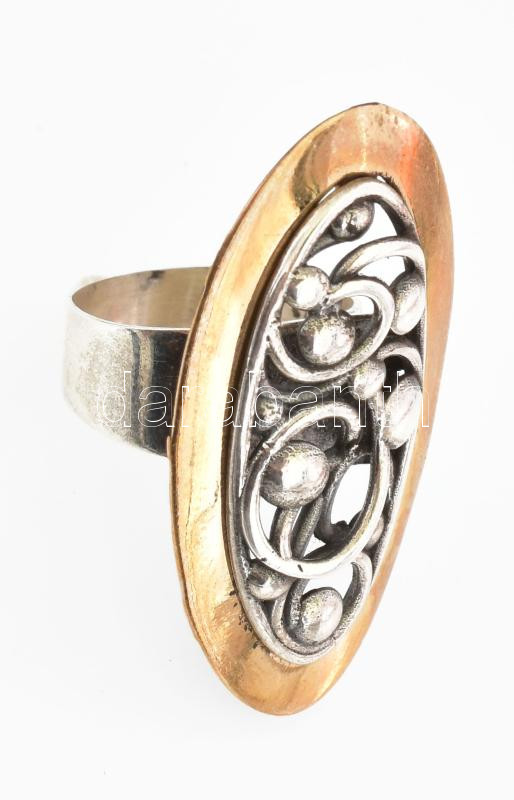 Beschreibung: Ezüst(Ag) áttört ovális gyűrű, jelzett, méret: 53, nettó: 7,7 g