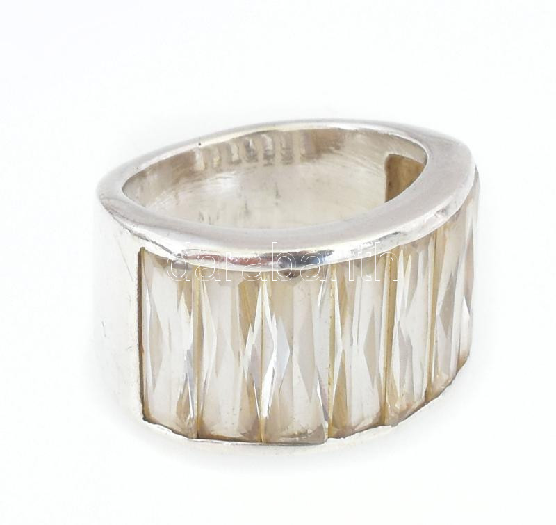 Beschreibung: Ezüst(Ag) fehér köves masszív gyűrű, jelzett, méret: 52, bruttó: 10,3 g