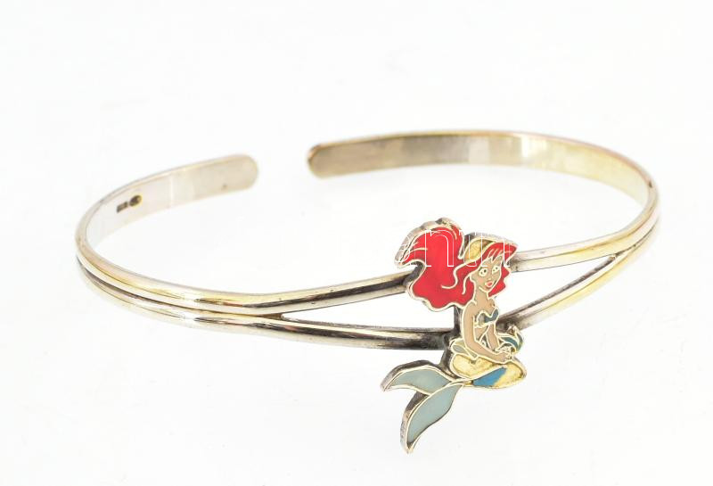 Beschreibung: Ezüst(Ag) gyerek karperec Kis hableány ábrázolással, jelzett, 4,5×3,5 cm, kis zománchiánnyal, bruttó: 4,8 g