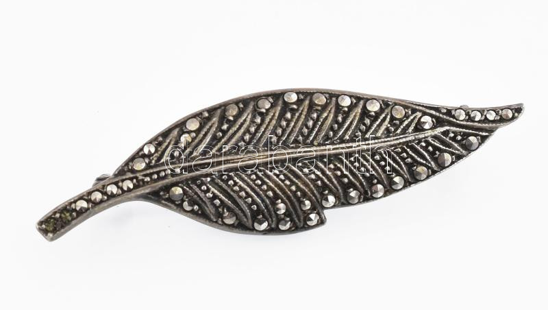 Ezüst(Ag) leveles bross markazittal, jelzett, 4,5×1 cm, bruttó: 4 g https://www.darabanth.com/de/457-Fernauktion/457.0/Juwellen-und-Kunstobjekte-aus-Edelmetall/Juwellen-und-Kunstobjekte-aus-Edelmetall~2000365/EzustAg-leveles-bross-markazittal-jelzett-4-5C3971-cm-brutto-4-g~II3059403