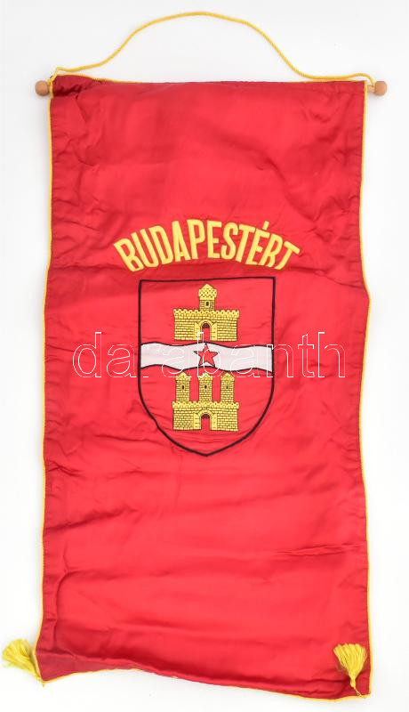 Budapestért nagyméretű szocialista selyem zászló 92x46 cm https://www.darabanth.com/de/457-Fernauktion/457.0/Kunst-Dokumente-andere-Sammelgebiete/Budapest-150~2000361/Budapestert-nagymeretu-szocialista-selyem-zaszlo-92x46-cm~II3053441