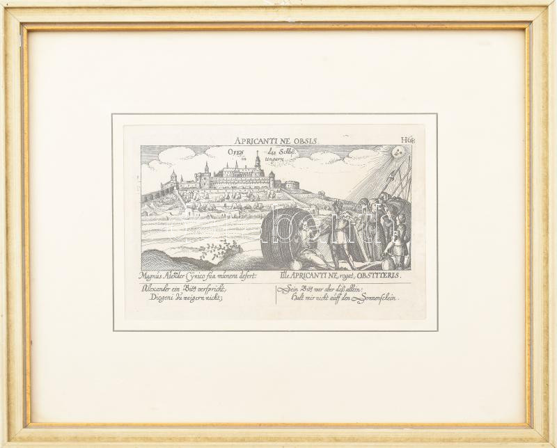 rézmetszet, papír, 1... https://www.darabanth.com/de/457-Fernauktion/457.0/Kunst-Dokumente-andere-Sammelgebiete/Budapest-150~2000361/Meissner-Daniel-1585-1625-Buda-latkepe-1626-rezmetszet-papir-100150-mm-Uvegezett-kere~II3059895