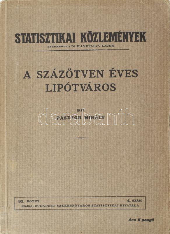 Pásztor Mihály: A százötven éves Lipótváros. Statisztikai Közlemények ... https://www.darabanth.com/de/457-Fernauktion/457.0/Kunst-Dokumente-andere-Sammelgebiete/Budapest-150~2000361/Pasztor-Mihaly-A-szazotven-eves-Lipotvaros-Statisztikai-Kozlemenyek-93-kotet-4-szam-~II3061291