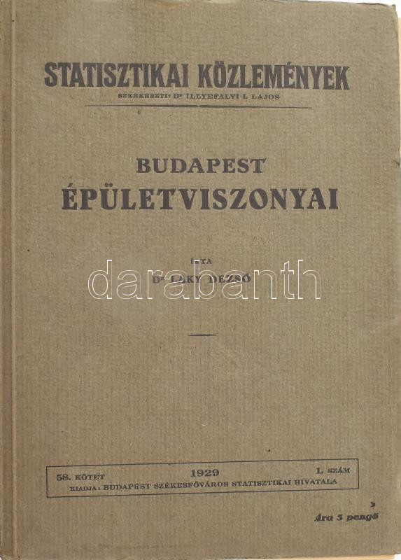 Bp., 1929, Budapest Székesfőváros Statisztikai Hivatala, X, 341 lKiadói papírkötés, jó állapotban
