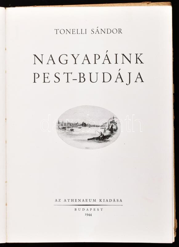 Tonelli Sándor: Nagyapáink Pest-Budája. Bp., 1944, Athenaeum, 218+(4) ... https://www.darabanth.com/de/457-Fernauktion/457.0/Kunst-Dokumente-andere-Sammelgebiete/Budapest-150~2000361/Tonelli-Sandor-Nagyapaink-Pest-Budaja-Bp-1944-Athenaeum-218plus4-pplus-7-szines-t-Szovegk~II3056454