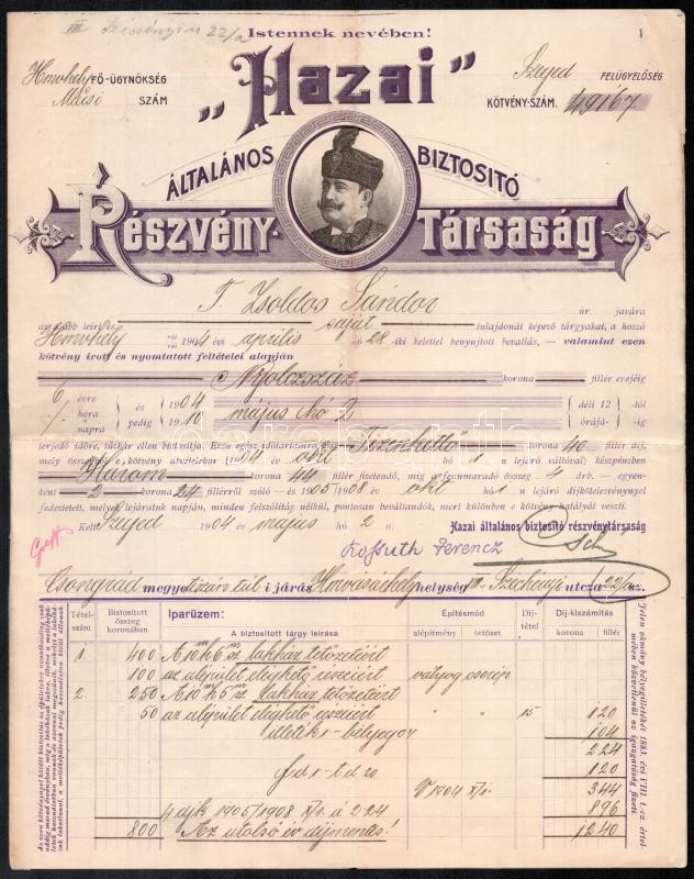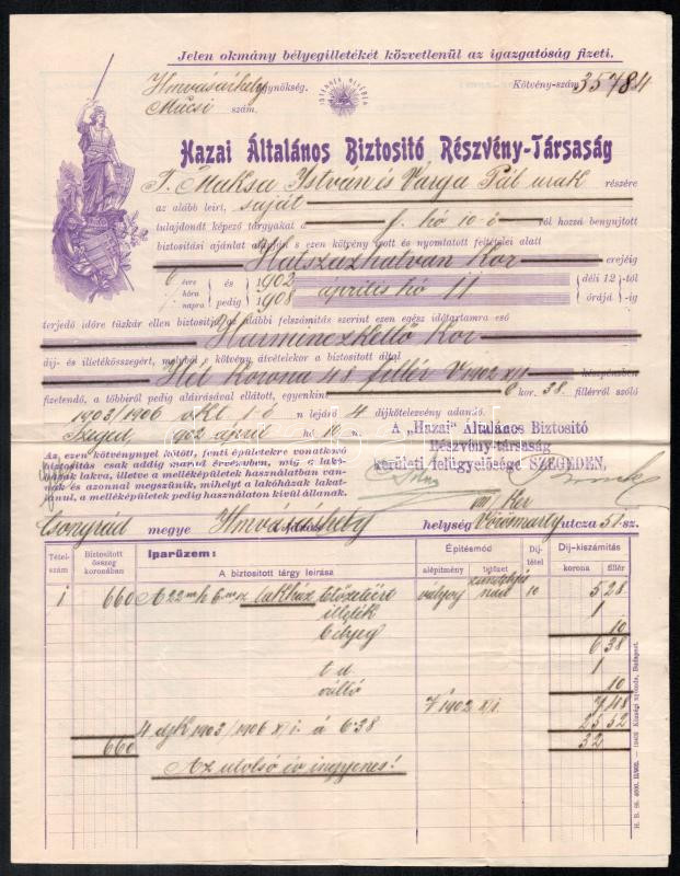 1905 2 db Hazai Biztosítási társaság kötvény https://www.darabanth.com/de/457-Fernauktion/457.0/Kunst-Dokumente-andere-Sammelgebiete/Dokument~500025/1905-2-db-Hazai-Biztositasi-tarsasag-kotveny~II3051393
