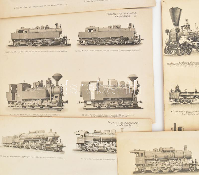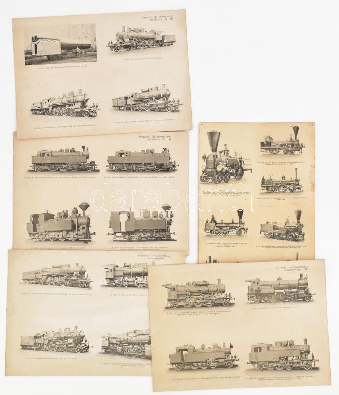 cca 1910 A Magyar Államvasutak mozdonyparkja 5 db táblán 23 db mozdony feliratozott képe /