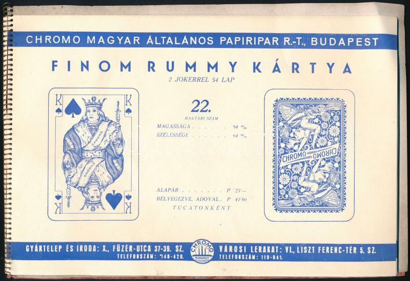 Beschreibung: cca 1936 Chromo Magyar Általános Papíripar Részvénytársaság kártyakatalógusa