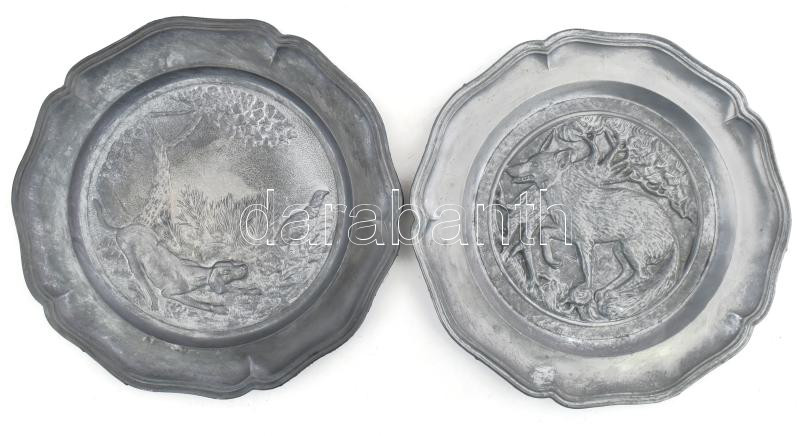 Beschreibung: 2 darab ón vadászmintás falitányér, jelzett, d: 22,5 cm