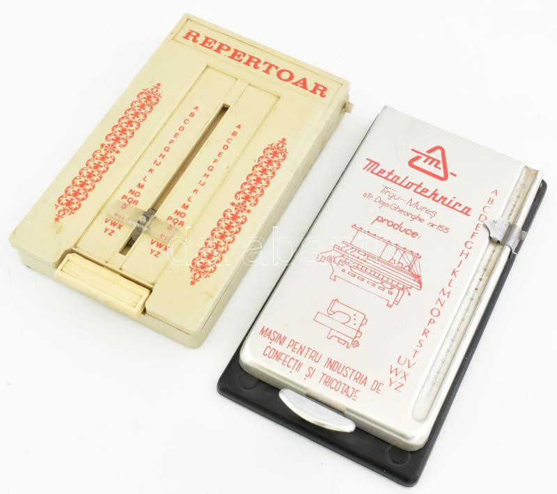 Beschreibung: 2 darab szabászati eszköz, kopással