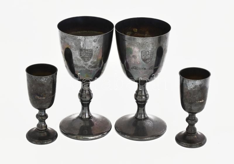 Beschreibung: 4 darab ezüstözött kupa, Kanada, gravírozott szöveggel, kopással, m: 9 cm