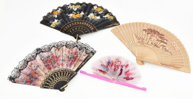 Beschreibung: 4 db legyező, különféle anyag és méret
