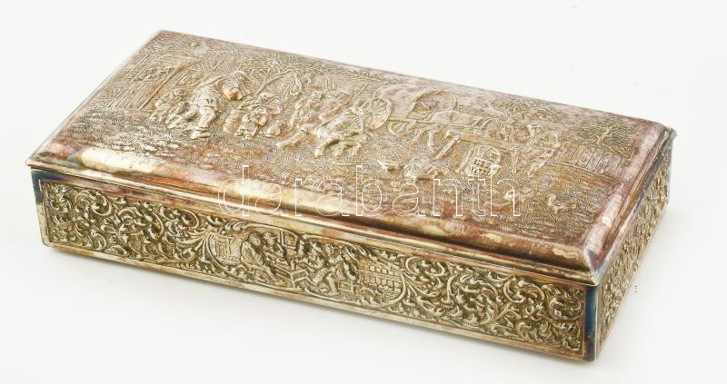 Antik fém ékszeres doboz. Jelzett, falusi mintával díszített, kopással... https://www.darabanth.com/de/457-Fernauktion/457.0/Kunst-Dokumente-andere-Sammelgebiete/Flohmarkt~500016/Antik-fem-ekszeres-doboz-Jelzett-falusi-mintaval-diszitett-kopassal-17x8x3-5-cm~II3053806
