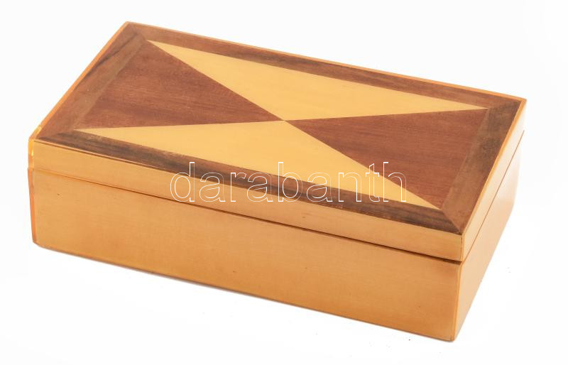 Art deco intarziás fadoboz, kis kopással, 23x13x7 cm https://www.darabanth.com/de/457-Fernauktion/457.0/Kunst-Dokumente-andere-Sammelgebiete/Flohmarkt~500016/Art-deco-intarzias-fadoboz-kis-kopassal-23x13x7-cm~II2941495