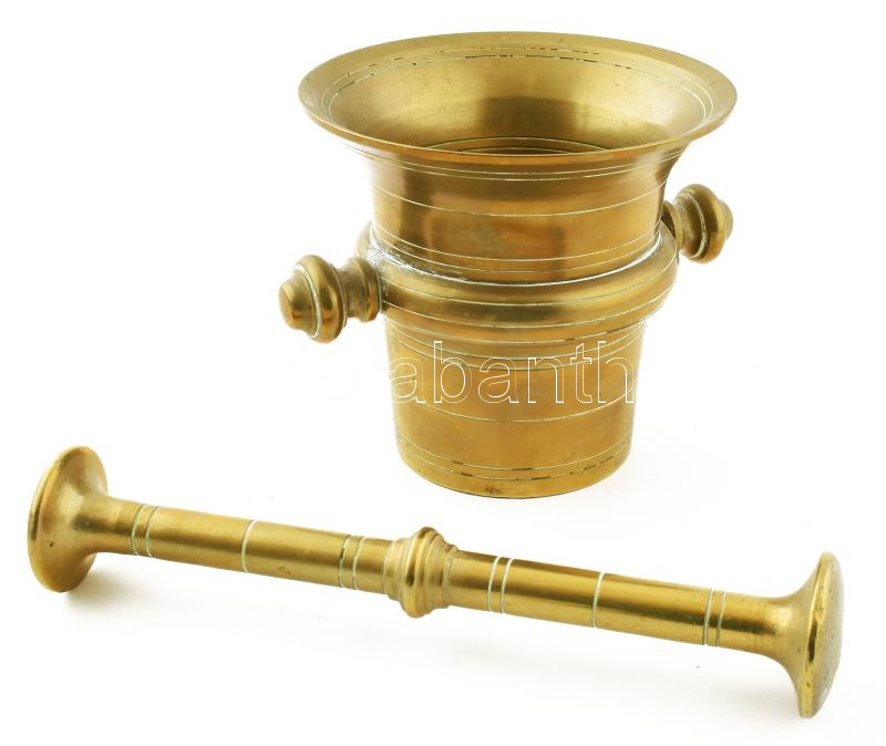 Bronz mozsár. M: 11,5 cm, törő h: 20,5 cm https://www.darabanth.com/de/457-Fernauktion/457.0/Kunst-Dokumente-andere-Sammelgebiete/Flohmarkt~500016/Bronz-mozsar-M-11-5-cm-toro-h-20-5-cm~II3053796