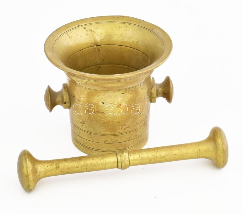 Bronz mozsár, minimális ütődéssel, kopással, m: 12 cm, törő h: 22 cm https://www.darabanth.com/de/457-Fernauktion/457.0/Kunst-Dokumente-andere-Sammelgebiete/Flohmarkt~500016/Bronz-mozsar-minimalis-utodessel-kopassal-m-12-cm-toro-h-22-cm~II3057333