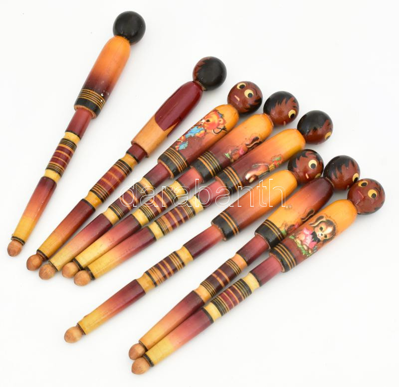 Fa figurális gyerek dísztoll szett, 8 db, nem írnak, h: 15,5 cm https://www.darabanth.com/de/457-Fernauktion/457.0/Kunst-Dokumente-andere-Sammelgebiete/Flohmarkt~500016/Fa-figuralis-gyerek-disztoll-szett-8-db-nem-irnak-h-15-5-cm~II3016155