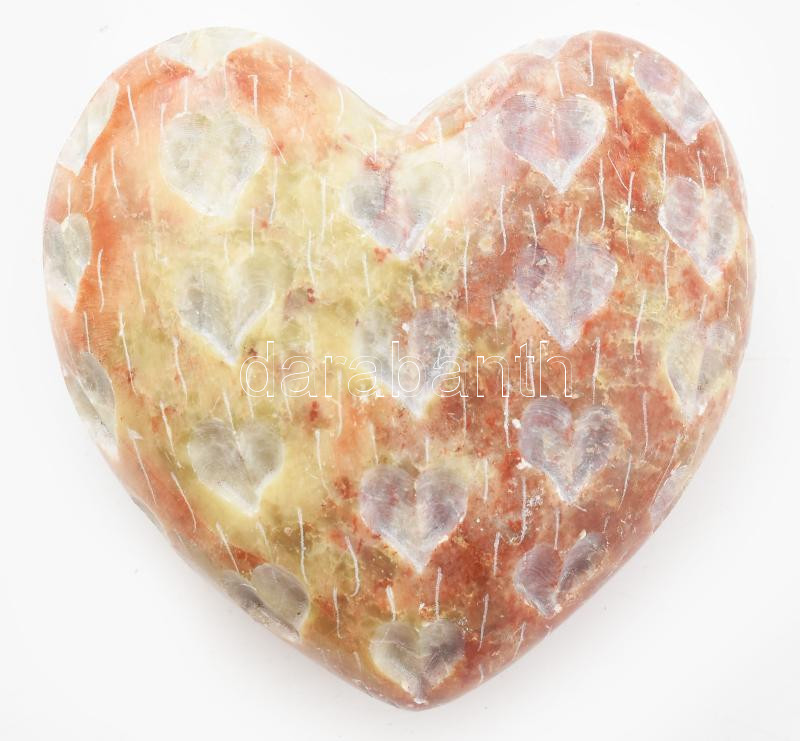 Beschreibung: Márvány szív alakú levélnehezék, szív alakú csiszolásokkal díszített, 8,5x8 cm
