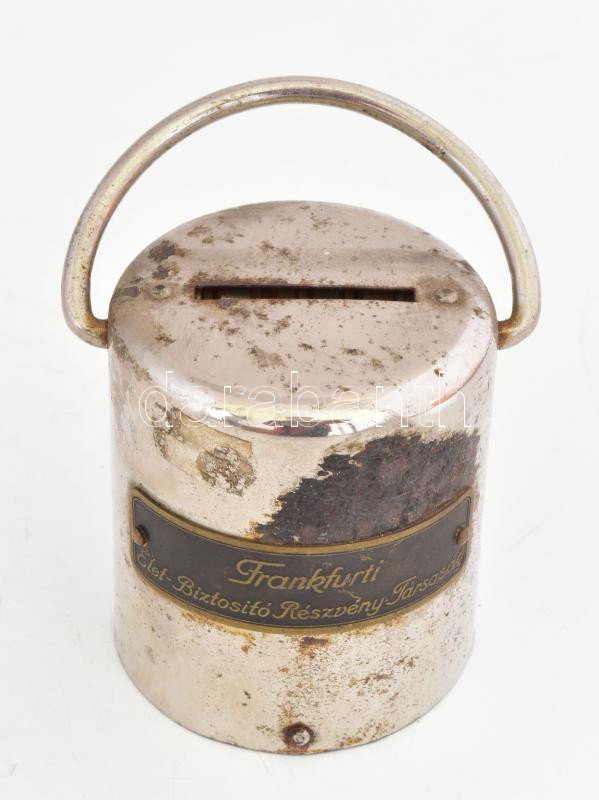 Régi fém persely, "Frankfurti Élet-Biztosító Részvény-Társaság&qu... https://www.darabanth.com/de/457-Fernauktion/457.0/Kunst-Dokumente-andere-Sammelgebiete/Flohmarkt~500016/Regi-fem-persely-Frankfurti-Elet-Biztosito-Reszveny-Tarsasag-felirattal-kulcs-nelkul-~II3051452