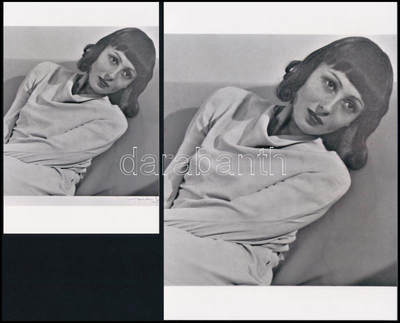 Beschreibung: 1934 Munkácsi Márton (1896-1963) magyar - amerikai fotóriporter és fotóművész 1937-ben két alkotásával szerepelt Budapesten, a Vigadóban megrendezett nemzetközi fotóművészeti kiállÃtáson, amit a Modern Magyar FényképezÅ‘k Társasága szervezett és rendezett; Kinszki Imre készÃtett üveglemez negatÃvra másolatot a Munkácsi által aláÃrt képrÅ‘l, ebben a tételben a NÅ‘i portré c. felvétel modern nagyÃtása szerepel, 21x15 cm és az aláÃrással együtt is 10x15 cm
